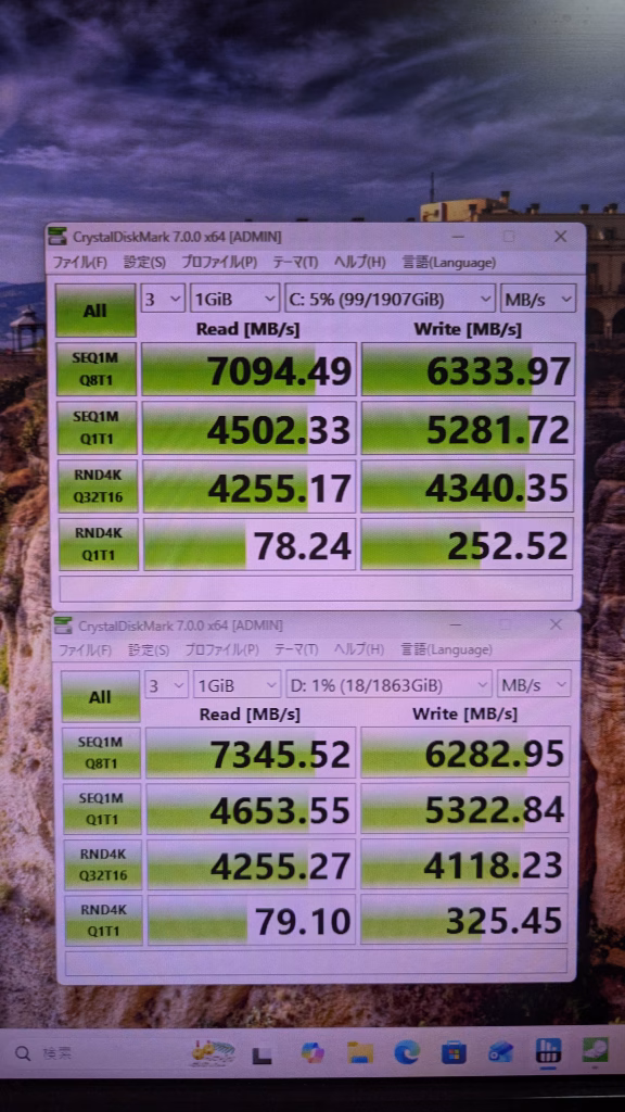 ストレージ読み込み速度 7094 7345 SSD HDDは省略