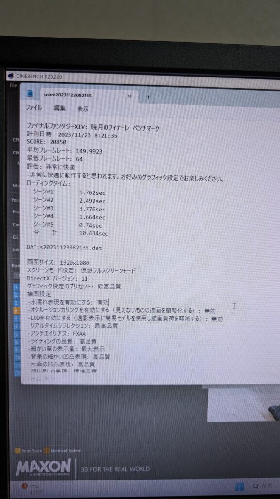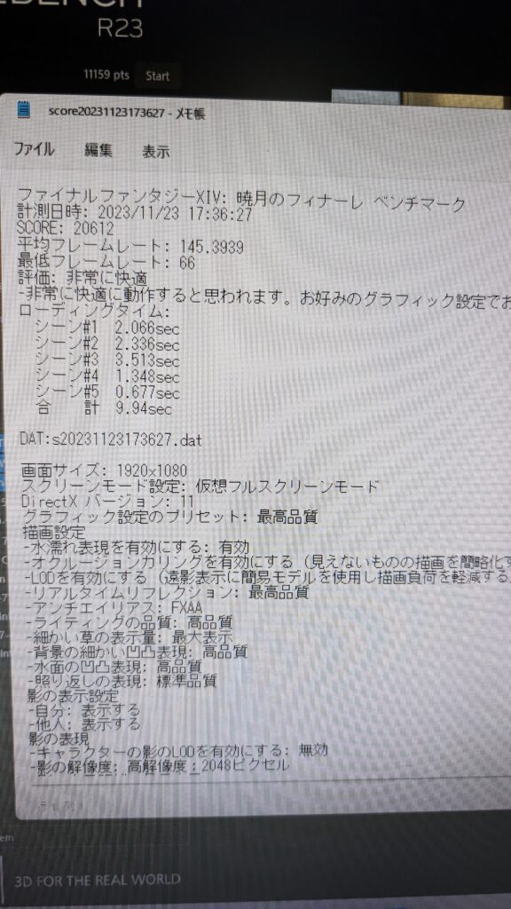 FF14 FHD 最高画質 23226 平均フレームレート 166