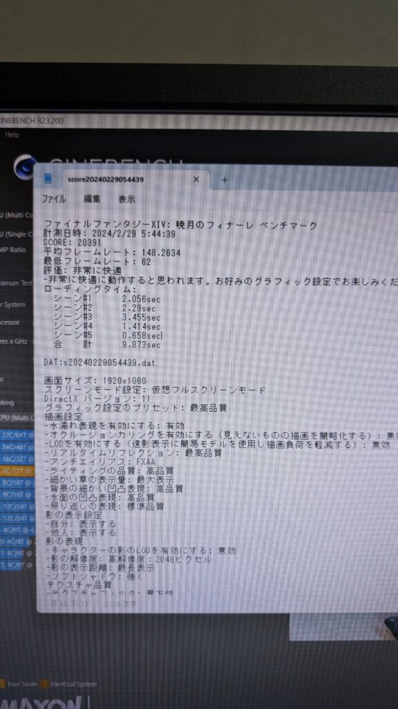 FF14 FHD 最高画質 28993 平均フレームレート 209